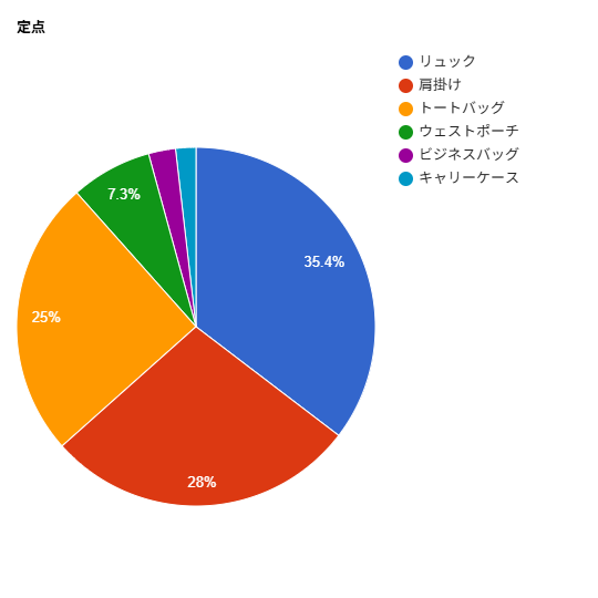 リュック、肩掛け、トートバッグは安定してたくさんの人が使っていました。
