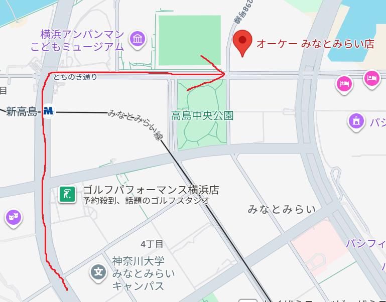 目的地は、オーケー みなとみらい店です。